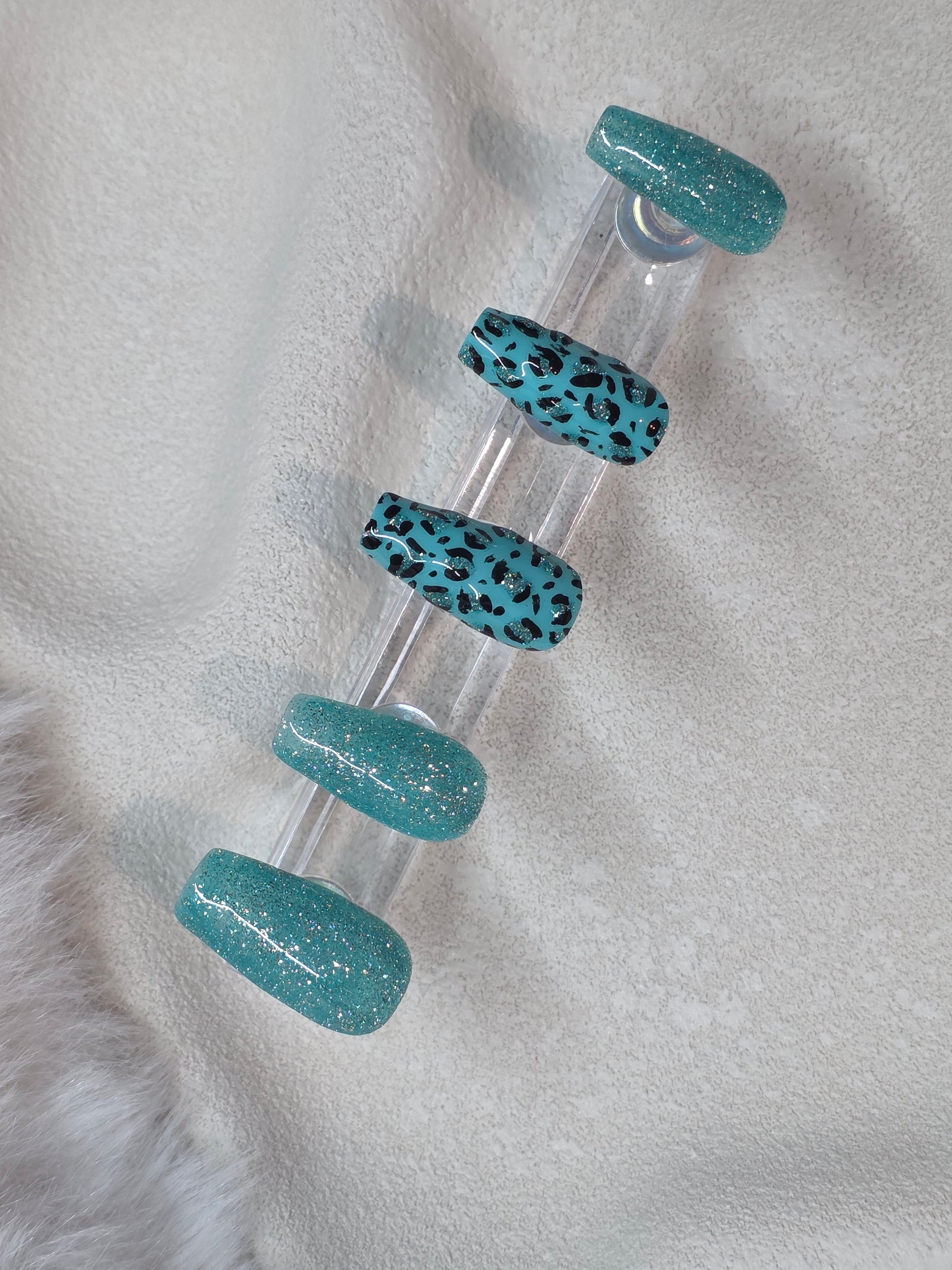 1x set of hand made press-on nails, file, standard nail glue, cuticle stick & nail wipes
